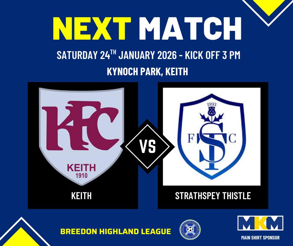 This Saturday, weather permitting, we’re off down the A95 for our match versus Keith FC.